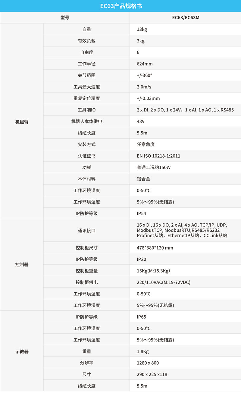 3KG EC63 六軸協(xié)作機器人