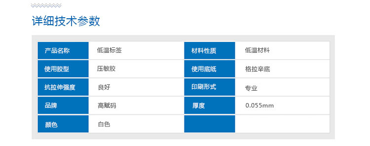 低溫標(biāo)簽主要針對低溫環(huán)境而生產(chǎn)的一種特殊不干膠標(biāo)簽,普通低溫標(biāo)簽一般可以在零下七十?dāng)z氏度低溫環(huán)境下使用,所選材料是pet材質(zhì)的,環(huán)保無污染,而且耐低溫標(biāo)簽的印刷油墨也是特殊油墨,印刷圖案何字體在低溫環(huán)境下不會掉色,不會暈開,所用膠水是耐低溫強(qiáng)粘性膠水,低溫環(huán)境中也不會開裂或脫落,其性能可以貼在霜凍/深凍物體的表面,便于冷庫物品的管理與查詢。