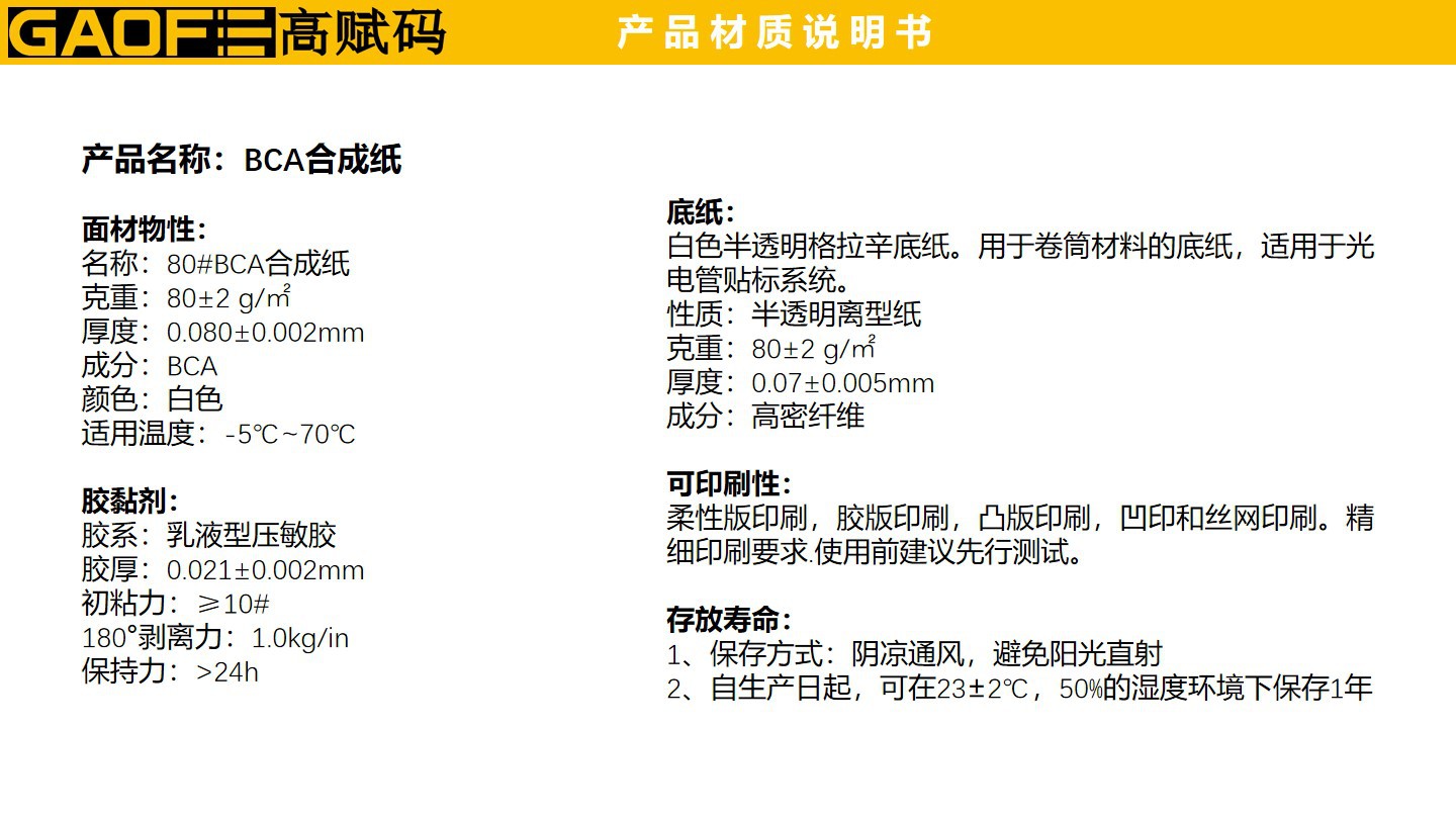 產(chǎn)品名稱:BCA合成紙