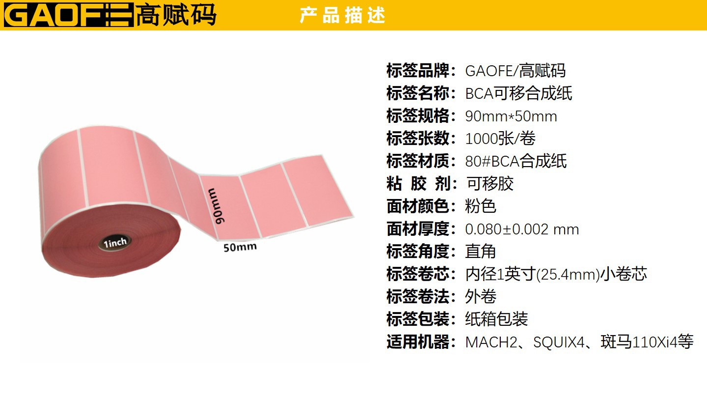 彩色標(biāo)簽紙 粉色可移合成紙90mm*50mm PP標(biāo)簽紙 可二次使用-高賦碼