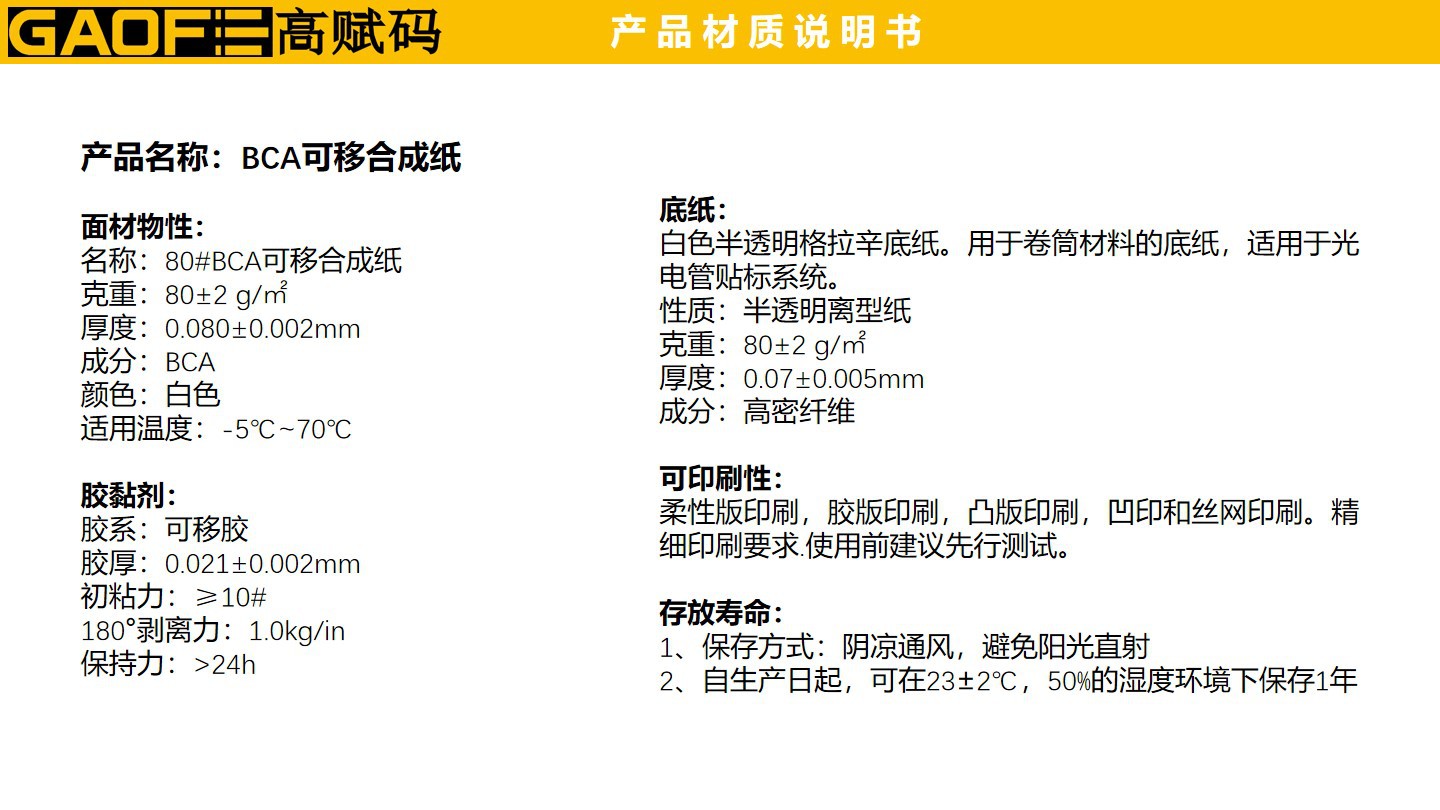 產(chǎn)品名稱:BCA可移合成紙