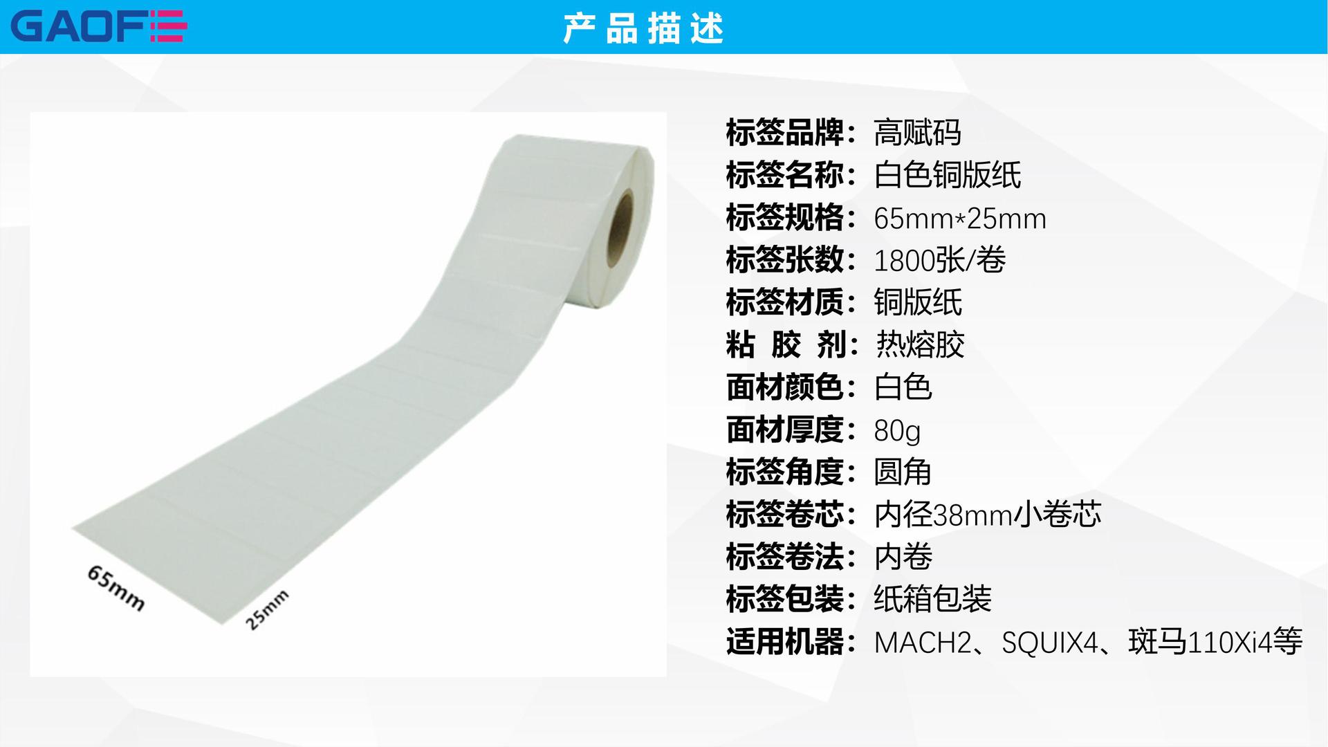 空白標簽 65mm*25mm 不干膠銅版紙 易碎銅版紙 出貨標簽紙 高賦碼