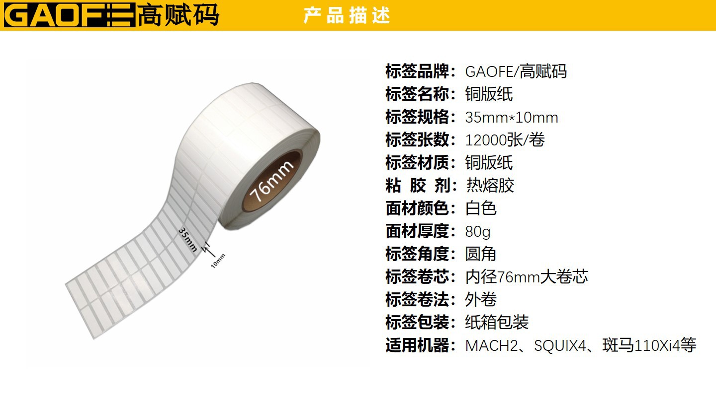 條形碼標簽紙 銅版紙標簽 35mm*10mm 不干膠標簽 貼紙