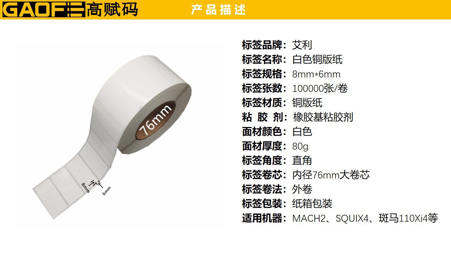 5209不干膠銅版紙 8mm*6mm強(qiáng)粘性標(biāo)簽 外箱出貨銅版紙標(biāo)簽 高賦碼
