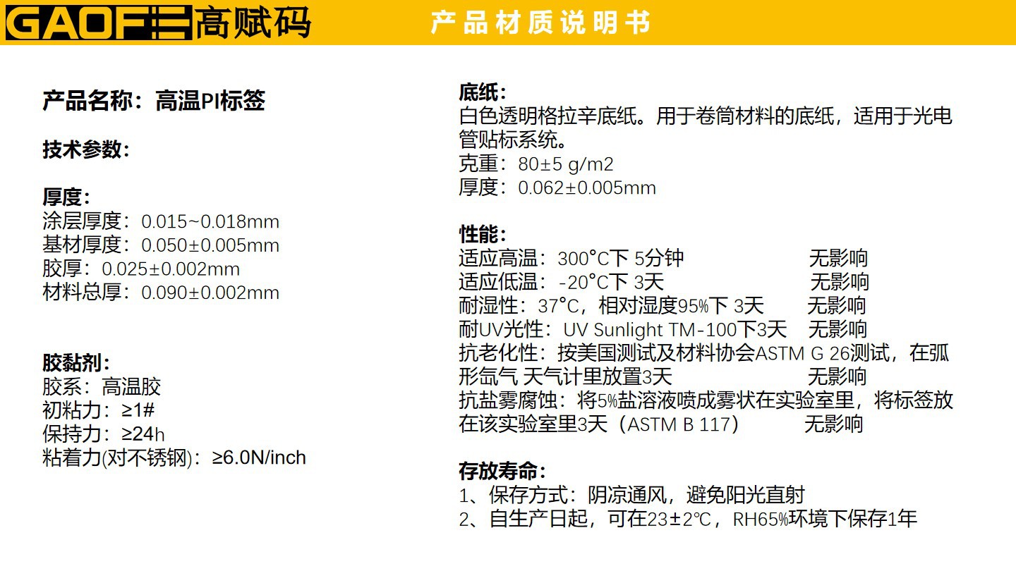 PI耐高溫標(biāo)簽