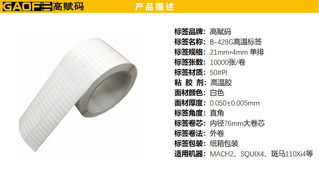 50#耐高溫啞面PI B-428G 21mm*4mm 高溫標(biāo)簽 電子行業(yè)-高賦碼