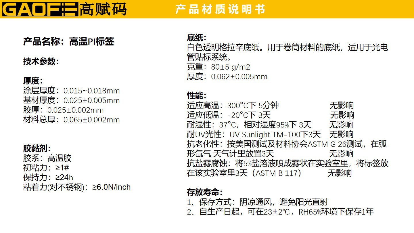 產(chǎn)品名稱:高溫PI標(biāo)簽