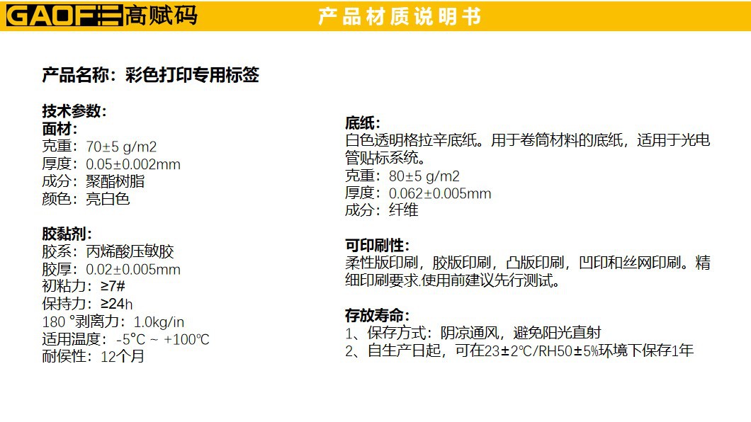 彩色打印機(jī)專用標(biāo)簽