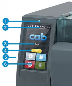 2 狀態(tài)列: 接收打印資料、記錄資料串流、碳帶將耗盡預(yù)警、SD 記憶卡 / U 盤、藍(lán)芽、WLAN 無線網(wǎng)絡(luò)、以太網(wǎng)絡(luò)、USB Slave 傳輸接口、時(shí)間