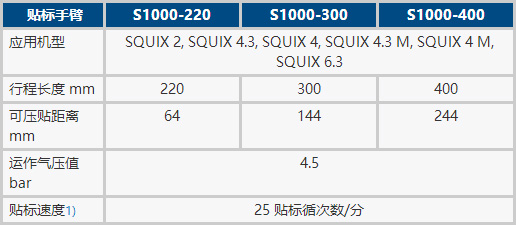 使用壽命、預先剝離功能、氣壓計、穩(wěn)定度和支撐氣流等說明請參照貼標手臂 S1000。