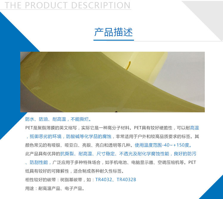 | 品 名 | 25番透明特多龍 | 代 號(hào) | TLTB-Y22V | 英文名稱 | 25μ TRANSPARENT POLYESTER LABEL |