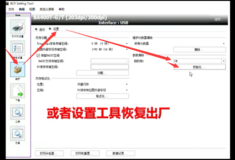 打開BCP Setting TOOL軟件——維護(hù)——設(shè)置——目的地選擇CN——點(diǎn)初始化——點(diǎn)確認(rèn)——等待恢復(fù)出廠設(shè)置完成。