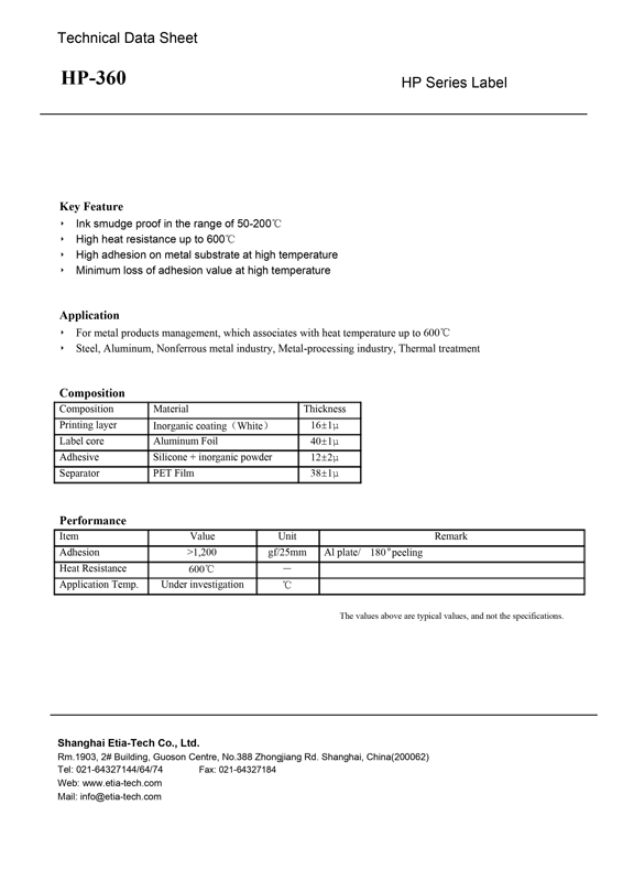 可移高溫標簽